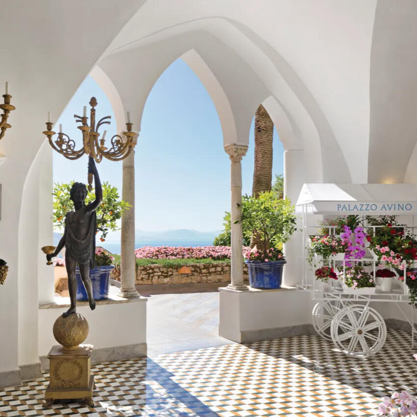 A luxurious hotel offering spectacular views of the Amalfi Coast and renowned for its excellent service and amenities.